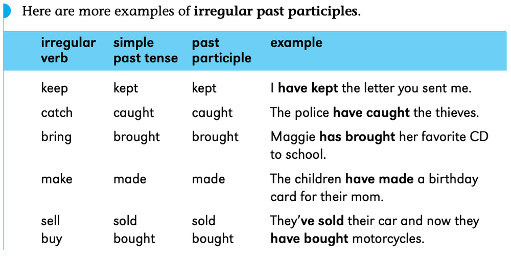 Auxiliary verbs auxiliary verbs are ‘helping verbs’ because they help to make different tenses. Present perfect tense the present perfect tense is formed when you use the auxiliary verb ‘to have’ with the past participle of a verb. “we caught” is the past tense, but this is not the primary verb of the sentence.